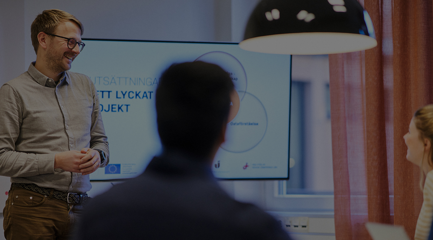 En del av vår mission på Science Park är att hjälpa företag i Jönköpings län att upptäcka affärsmöjligheterna med AI. Det gör vi genom flera olika insatser där vi möter upp ditt företag i just er kunskapsnivå kring AI. Här har du som företag i region Jönköpings län möjlighet att få kunskap och stöd från både affärsutvecklare och forskare med praktisk erfarenhet av tillämpad AI. Projektet är medfinansierat av Europeiska Unionen och Region Jönköpings län. Därför är alla insatser kostnadsfria.